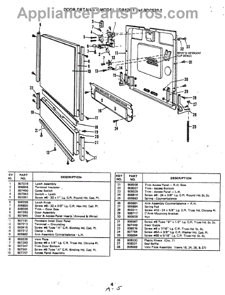 This factory screw secures appliance components to their mounting points. Replace missing, worn, or stripped hardware to restore a tight fit, proper alignment, and quieter operation across the affected assembly.