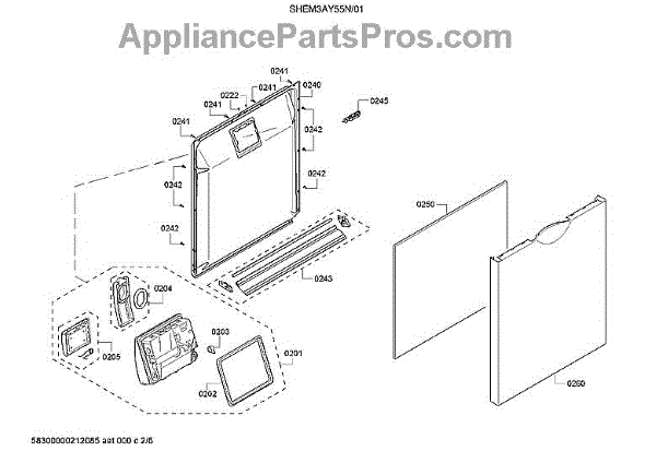 The Dishwasher Inner Door Panel is an OEM part for Bosch dishwashers. It is located inside the dishwasher door and protects internal components.