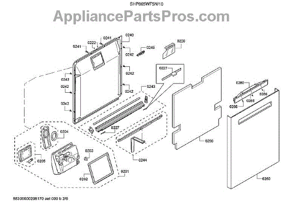 The Outer Door Panel is an OEM part for Bosch dishwashers. It serves as the exterior cover of the dishwasher door, providing protection and contributing to the appliance's overall aesthetic. Note: Outer door only, the handle is sold separately. Handle part number 12012913