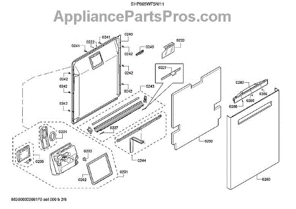 The Outer Door Panel is an OEM part for Bosch dishwashers. It serves as the exterior cover of the dishwasher door, providing protection and contributing to the appliance's overall aesthetic. Note: Outer door only, the handle is sold separately. Handle part number 12012913