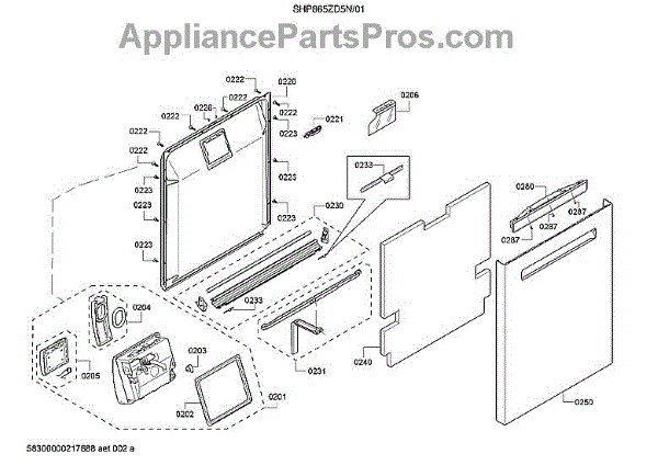 The outer door is an OEM component specifically designed for Bosch dishwashers. The outer door acts as a protective barrier, shielding internal components from potential damage while providing users access to loading and unloading dishes.