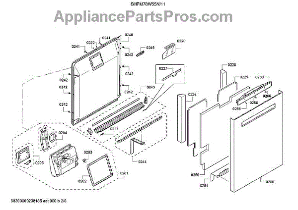 The Outer Door Panel is an OEM part for Bosch dishwashers. It serves as the exterior cover of the dishwasher door, providing protection and contributing to the appliance's overall aesthetic. Note: Outer door only, the handle is sold separately. Handle part number 12012913