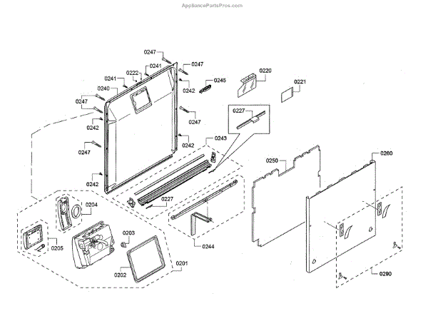 This outer door panel replaces the exterior shell of a dishwasher door to restore appearance and protect internal components. It provides a clean, finished surface and helps maintain proper door alignment and sealing. What it does: