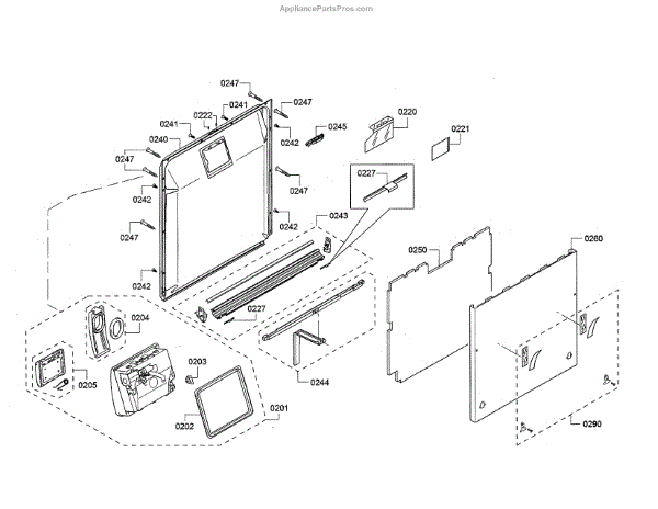 This outer door panel replaces the exterior shell of a dishwasher door to restore appearance and protect internal components. It provides a clean, finished surface and helps maintain proper door alignment and sealing. What it does: