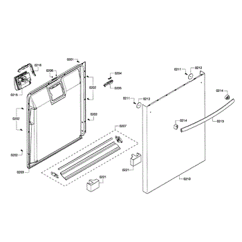 The Dishwasher Inner Door Panel is an OEM part for Bosch dishwashers. It is located inside the dishwasher door and protects internal components.