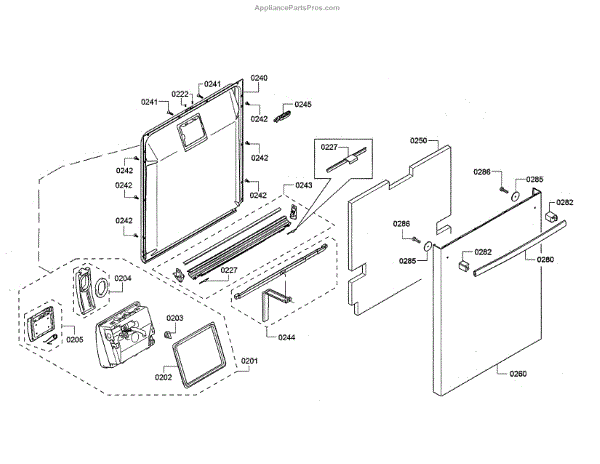 The Door Handle is an OEM part for Bosch dishwashers. It is installed on the outer edge of the dishwasher door and is used to open and close the door. The door handle is responsible for providing an easy and secure grip point to facilitate loading and unloading of dishes. It allows for controlled movement of the door through its range of motion. Symptoms of a bad door handle can include: