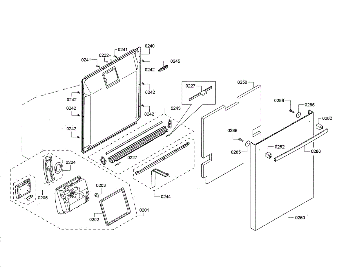This inner door panel forms the inside surface of the dishwasher door. It supports key door components and helps seal the tub, keeping water and heat contained for reliable, quiet operation.