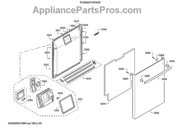 The Lower Door Seal is an OEM replacement part for Bosch dishwashers. It provides a water-tight barrier around the perimeter of the lower dishwasher door during cycle operation. Proper sealing is necessary to contain high-temperature water, steam and noise within the wash chamber. Causes of a bad lower door seal can include deterioration of the sealing material over many years of use and exposure to hot chemicals. Physical damage such as tears or compression marks from over-tightening the door may also compromise sealing ability. Symptoms of a bad lower door seal include: