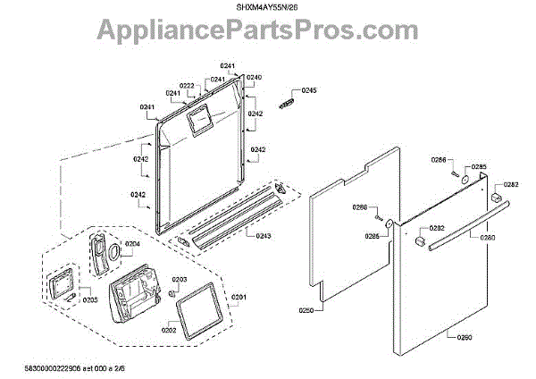 The Lower Door Seal is an OEM replacement part for Bosch dishwashers. It provides a water-tight barrier around the perimeter of the lower dishwasher door during cycle operation. Proper sealing is necessary to contain high-temperature water, steam and noise within the wash chamber. Causes of a bad lower door seal can include deterioration of the sealing material over many years of use and exposure to hot chemicals. Physical damage such as tears or compression marks from over-tightening the door may also compromise sealing ability. Symptoms of a bad lower door seal include: