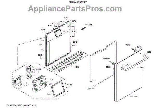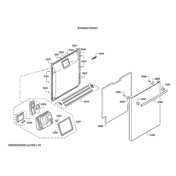 The Dishwasher Inner Door Panel is an OEM part for Bosch dishwashers. It is located inside the dishwasher door and protects internal components.
