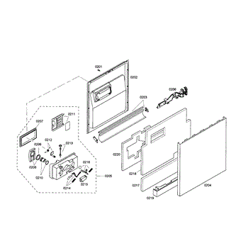 This outer door panel covers the front of the dishwasher door, restoring appearance and protecting internal door components from damage. It provides the exterior surface that the handle and control trim attach to. What it does