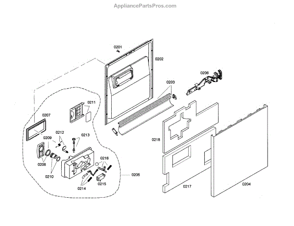• Forms the interior surface of the dishwasher door and helps contain water during cycles
