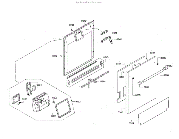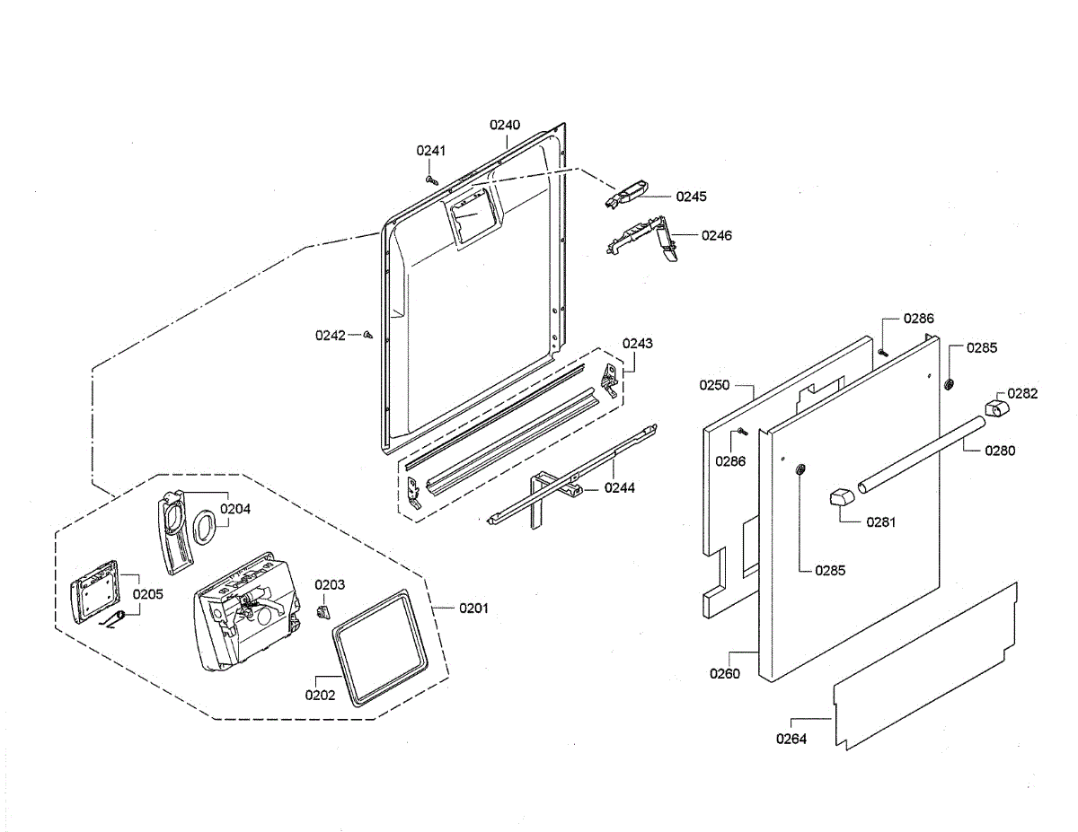 This inner door panel replaces a damaged or worn dishwasher door interior to restore proper door fit and help prevent leaks and rattling. It fits behind the outer door and supports the latch and internal components. What it does