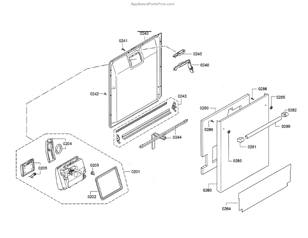 This inner door panel replaces a damaged or worn dishwasher door interior to restore proper door fit and help prevent leaks and rattling. It fits behind the outer door and supports the latch and internal components. What it does