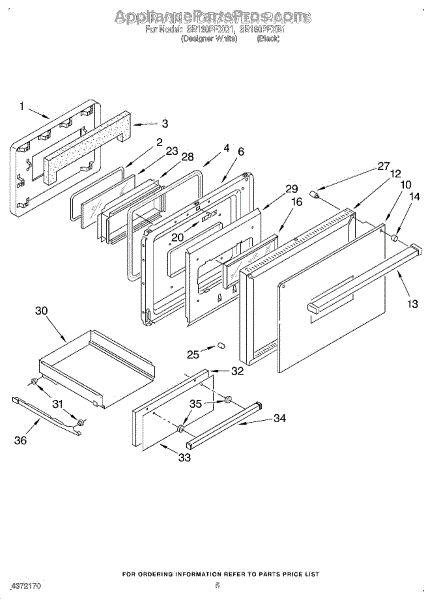 Parts for Whirlpool SB160PEXB1: 04 - Door And Drawer, Lit / Optional Parts