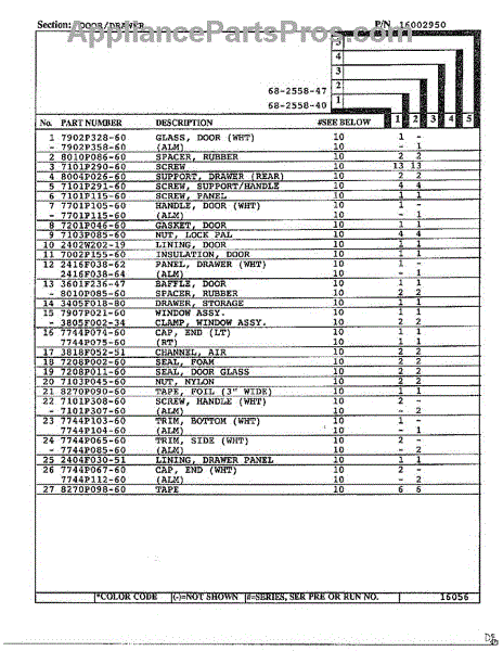 This factory screw secures appliance components to their mounting points. Replace missing, worn, or stripped hardware to restore a tight fit, proper alignment, and quieter operation across the affected assembly.