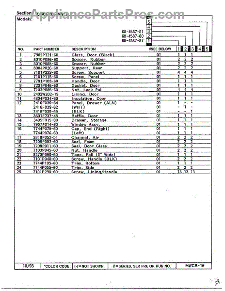 Parts for Magic Chef 68-4587-87: Door / Drawer Page 2 Parts