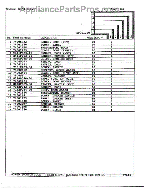 Parts for Magic Chef DF251300: Door / Drawer Page 2 Parts