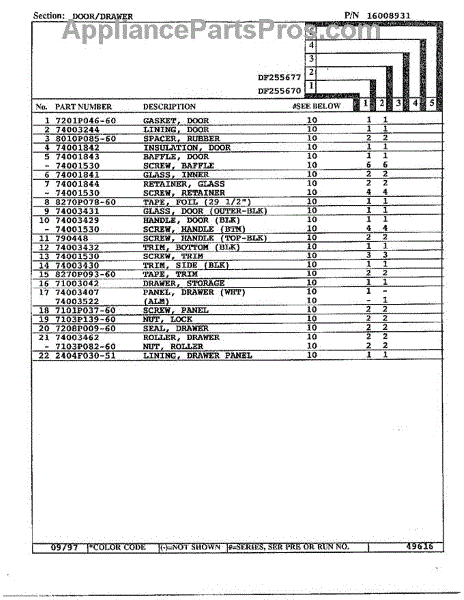 Parts for Magic Chef DF255677: Door / Drawer Page 2 Parts