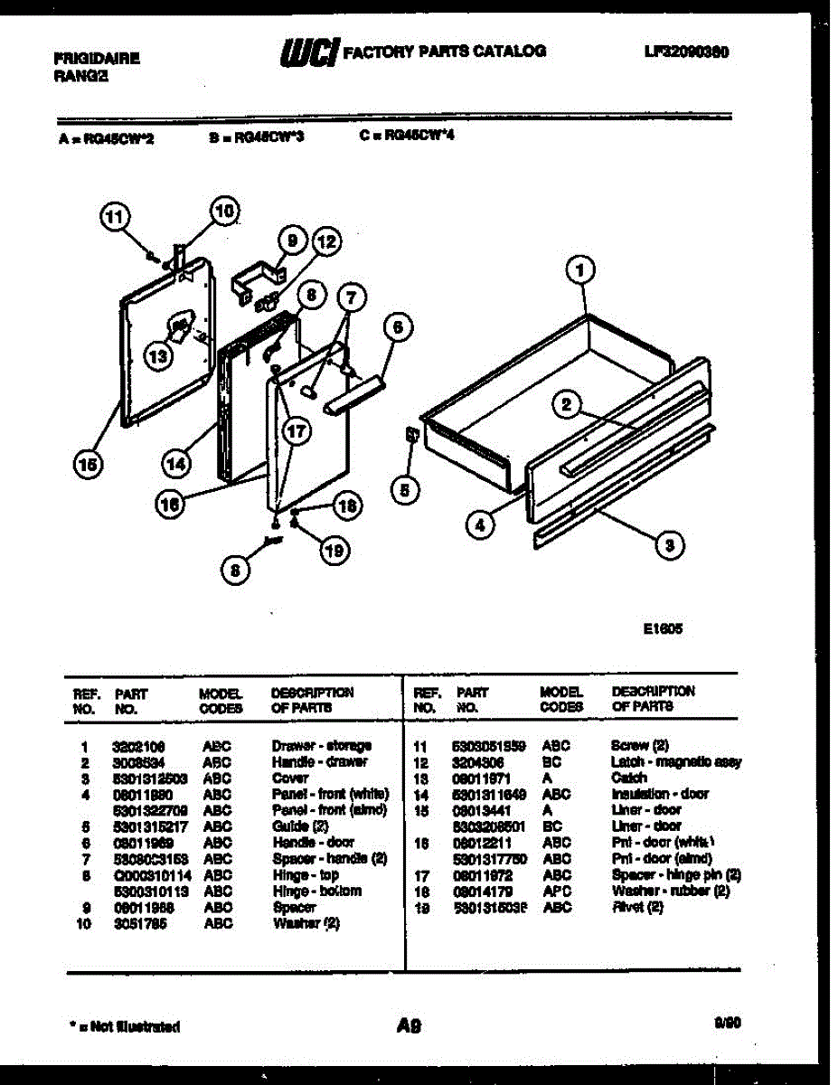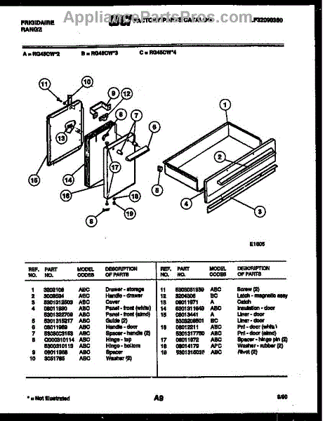 Parts for Frigidaire RG45CL4: 03 - Door And Drawer Parts