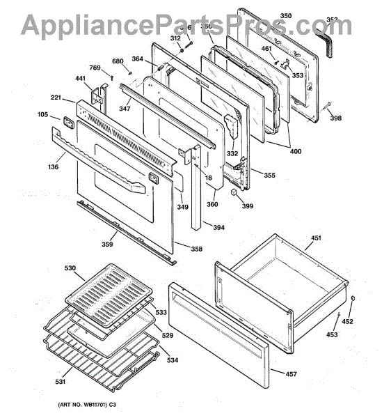 Parts for Ge JB940WY2: 03 - Door & Drawer Parts