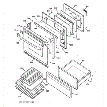 Parts for Ge JB940WY3: 03 - Door & Drawer Parts