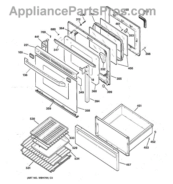 The Bottom Door Trim is an OEM part for GE ranges. It serves as a finishing touch, providing a seamless transition between the bottom of the oven door and the base or kick plate area.