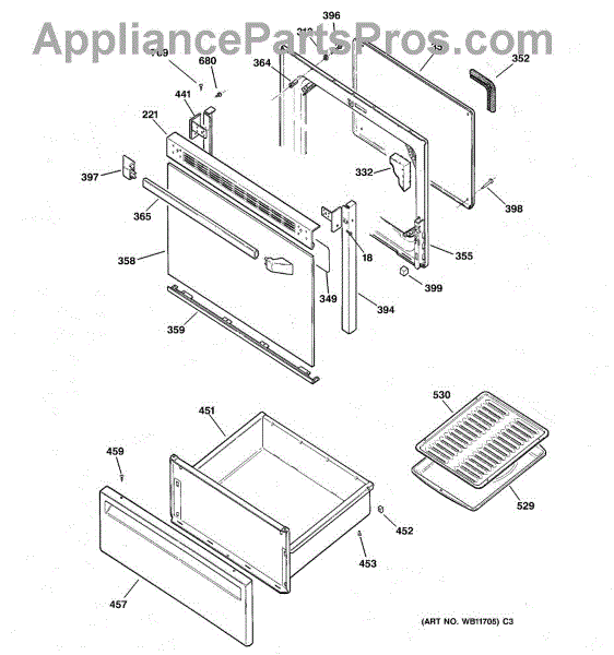 The Handle is an OEM part for GE ovens and ranges. It serves as the primary means of opening and closing the oven door, allowing you to access the interior for cooking, cleaning, or maintenance purposes. Order 2 of part number AP3623187 for the end caps.