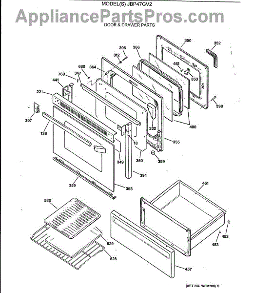 Parts for Ge JBP47GV2: 03 - Door & Drawer Parts