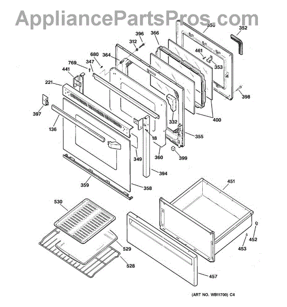 Parts for Ge JBP48WA4: 03 - Door & Drawer Parts