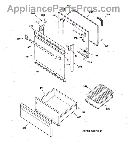 The Handle is an OEM part for GE ovens and ranges. It serves as the primary means of opening and closing the oven door, allowing you to access the interior for cooking, cleaning, or maintenance purposes. Order 2 of part number AP3623187 for the end caps.