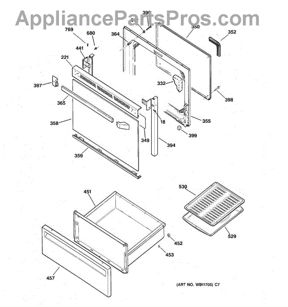 The Handle is an OEM part for GE ovens and ranges. It serves as the primary means of opening and closing the oven door, allowing you to access the interior for cooking, cleaning, or maintenance purposes. Order 2 of part number AP3623187 for the end caps.