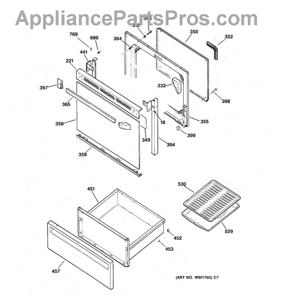 The Handle is an OEM part for GE ovens and ranges. It serves as the primary means of opening and closing the oven door, allowing you to access the interior for cooking, cleaning, or maintenance purposes. Order 2 of part number AP3623187 for the end caps.