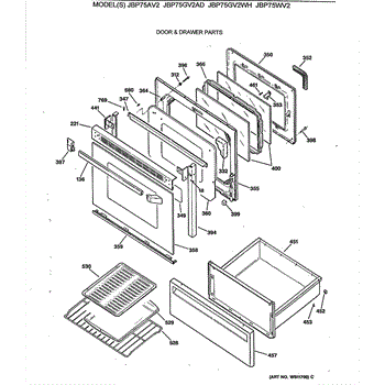 Parts for Ge JBP75GV2WH: 02 - Door & Drawer Parts