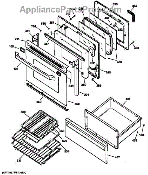 Parts for Ge JBP95WW1: Door & Drawer Parts