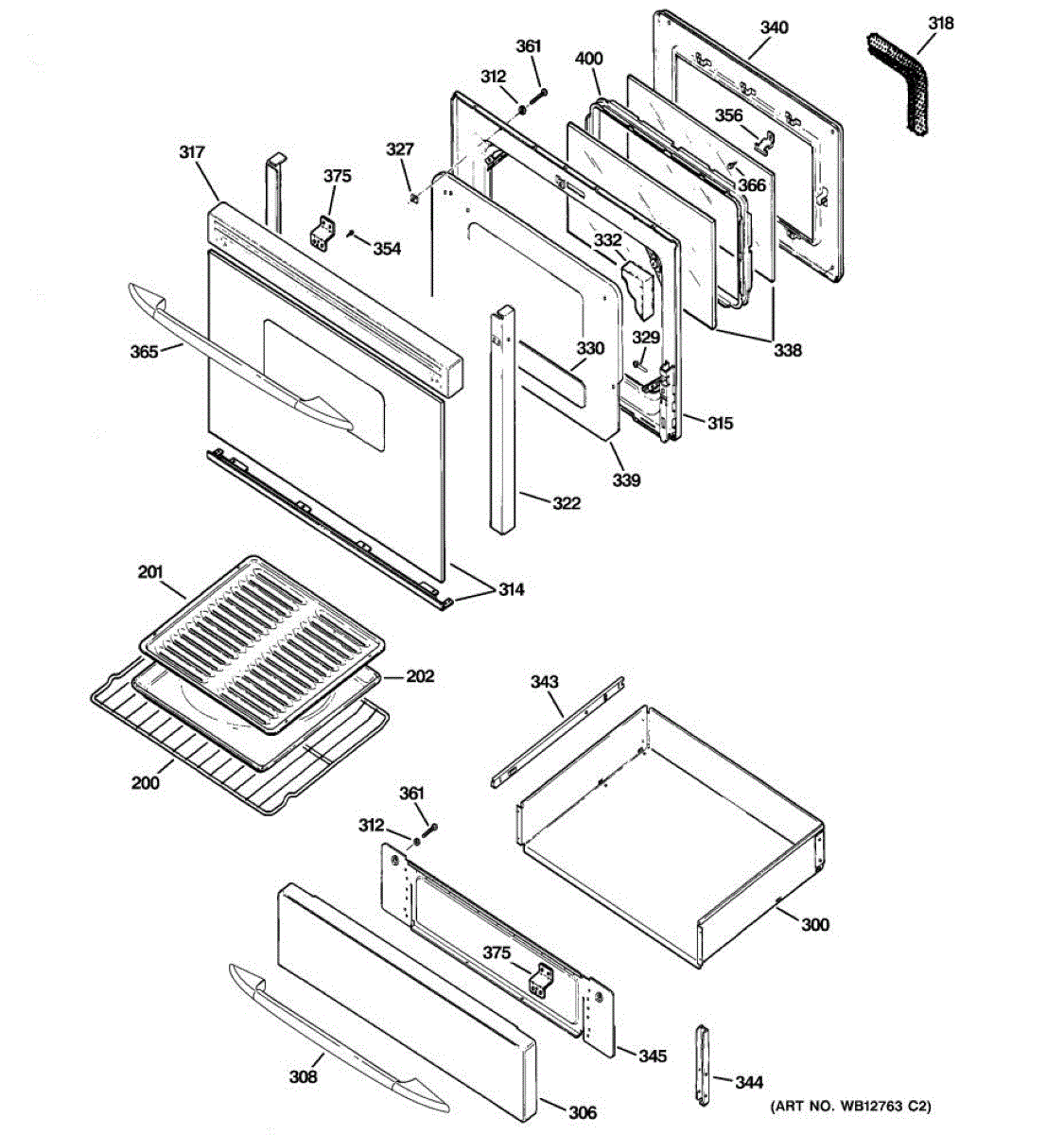 Door liner weld assembly for electric ranges. Replaces cracked, damaged, or broken door liner frames. Structural component that secures inner door panel.