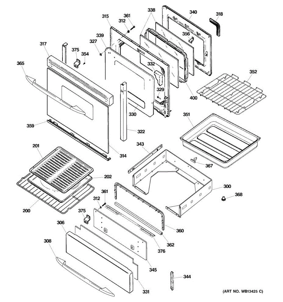 Oven door glass window pack for viewing food while cooking. Replaces cracked, shattered, or broken glass. Installs inside the oven door frame assembly.