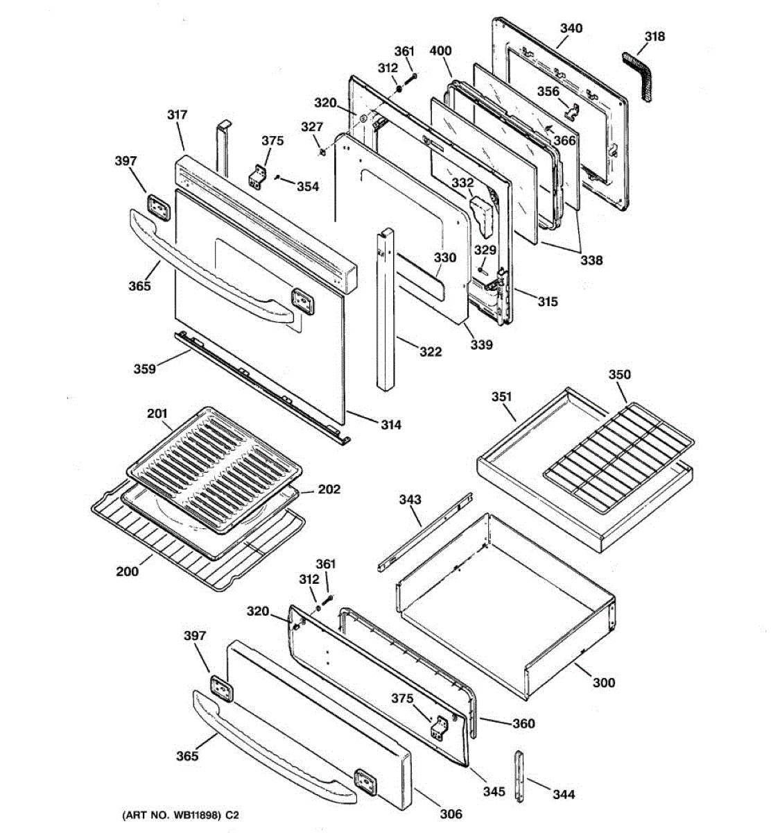 Parts for Ge JGB920KEC2CC: 04 - Door & Drawer Parts