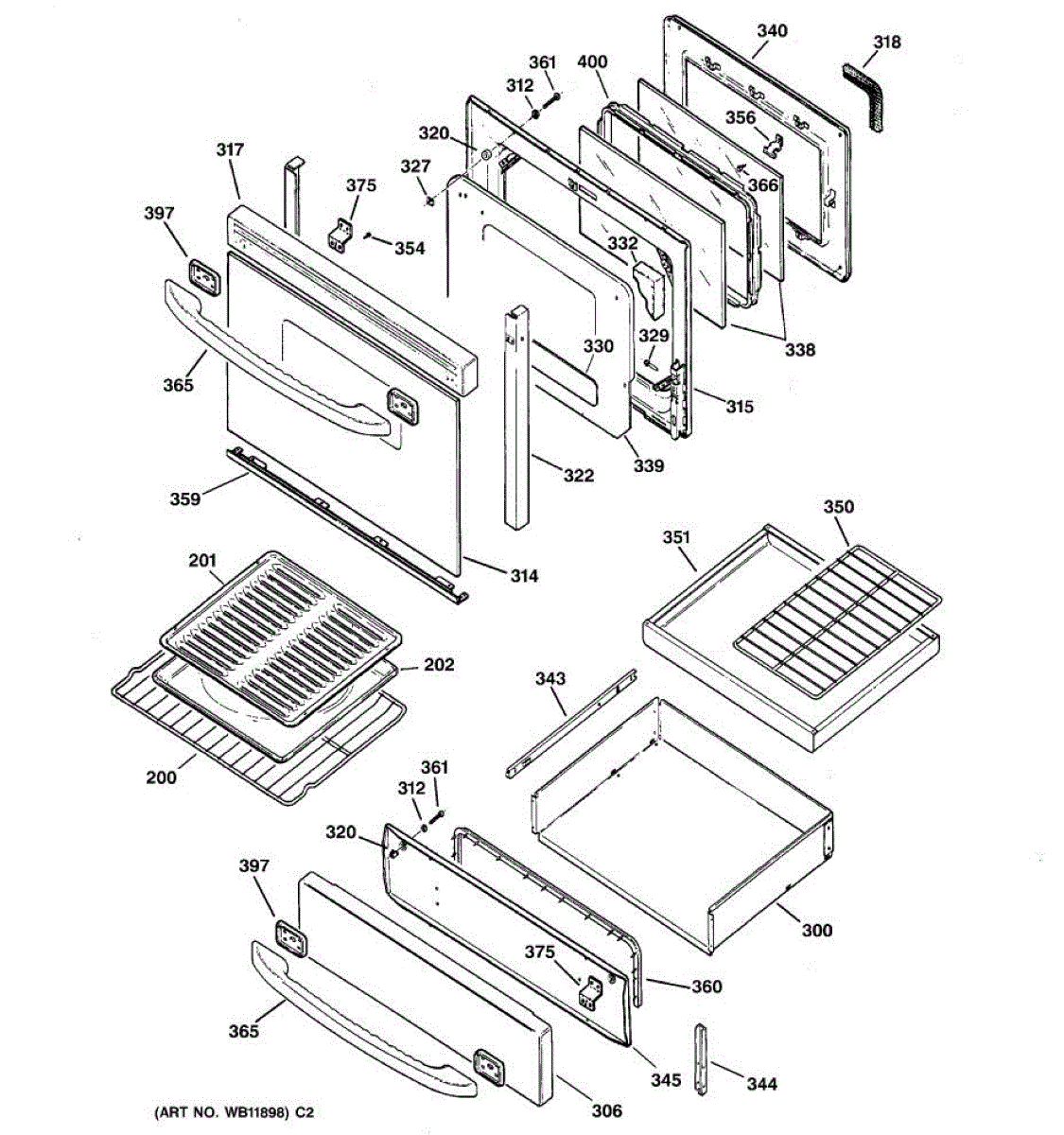 Door liner weld assembly for electric ranges. Replaces cracked, damaged, or broken door liner frames. Structural component that secures inner door panel.