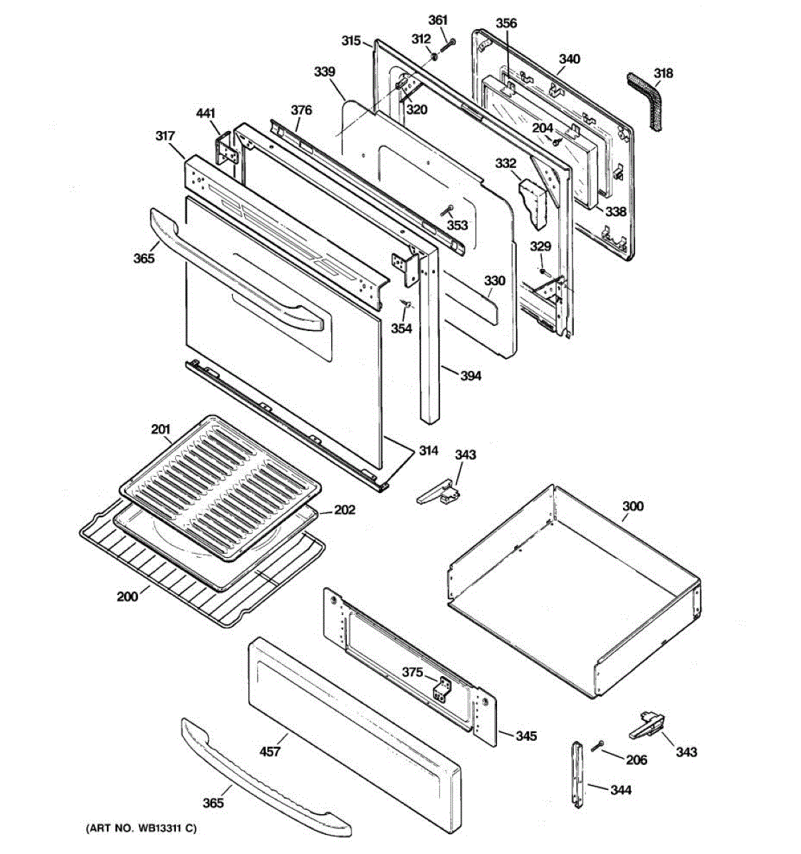 Door liner weld assembly for electric ranges. Replaces cracked, damaged, or broken door liner frames. Structural component that secures inner door panel.