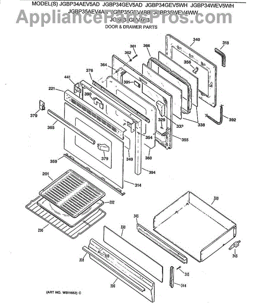 Parts for Ge JGBP35GEV4BB: 04 - Door & Drawer Parts