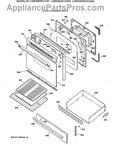 Parts for Ge LGB356WEW1WW: 04 - Door & Drawer Parts