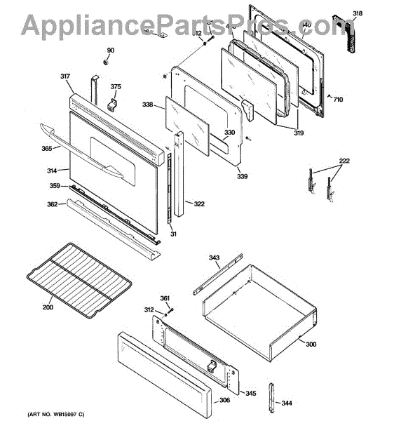 The Bottom Door Trim is an OEM part for GE ranges. It serves as a finishing touch, providing a seamless transition between the bottom of the oven door and the base or kick plate area.