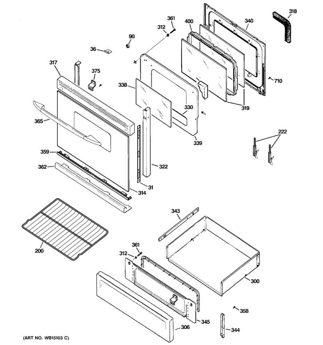 Door liner weld assembly for ranges. Structural component that forms the inner door frame. Replace if cracked, warped, or damaged from heat exposure.