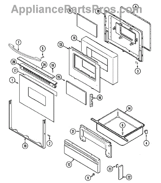 Rear broiler drawer support for ranges. Replaces cracked, broken, or worn drawer supports. Structural part that mounts under the broiler drawer compartment.