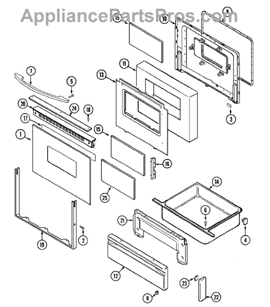 Rear broiler drawer support for ranges. Replaces cracked, broken, or worn drawer supports. Structural part that mounts under the broiler drawer compartment.