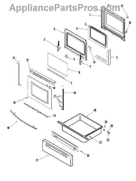 Decorative trim piece for range door. Installs around the outer edge of the door panel. Replace if cracked, broken, discolored, or missing.
