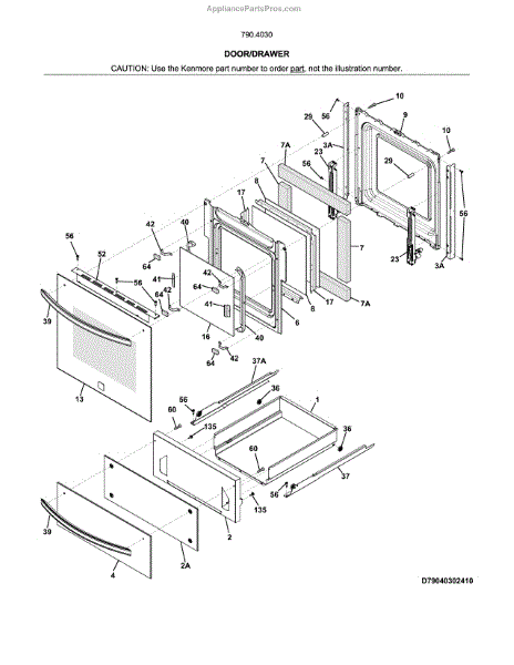 Parts for Kenmore 790.40302412 (79040302412, 790 40302412): Door / Drawer Parts