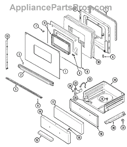 Oven door seal creates an airtight barrier to prevent heat loss and maintain proper temperature. Replace when torn, cracked, or loose. Verify fit with model.