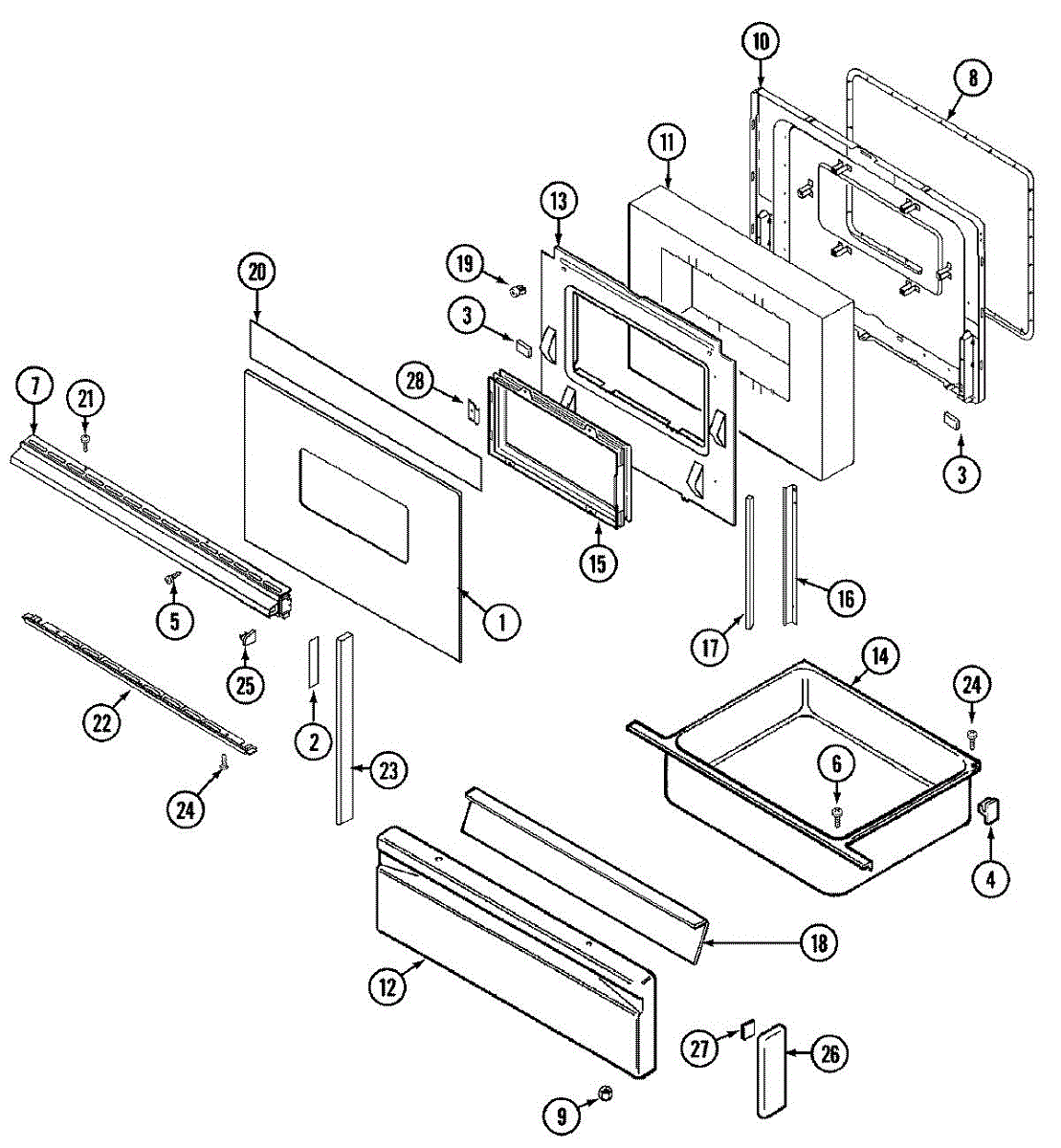 Rear broiler drawer support for ranges. Replaces cracked, broken, or worn drawer supports. Structural part that mounts under the broiler drawer compartment.